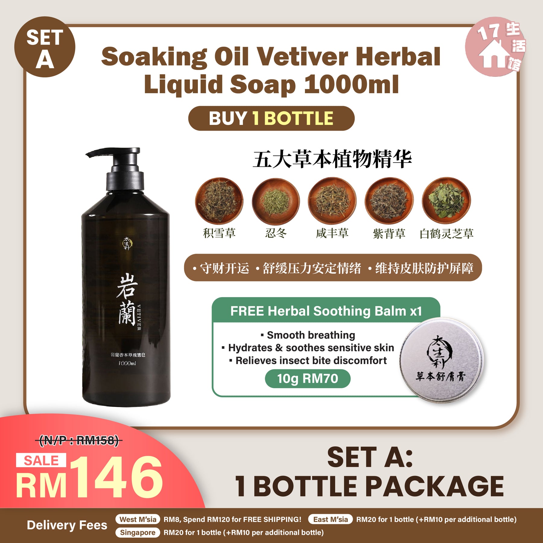 - 岩兰香草本𝟏瓶 RM146 (原价:RM158)🎁草本舒肤膏 x1 (价值RM70)