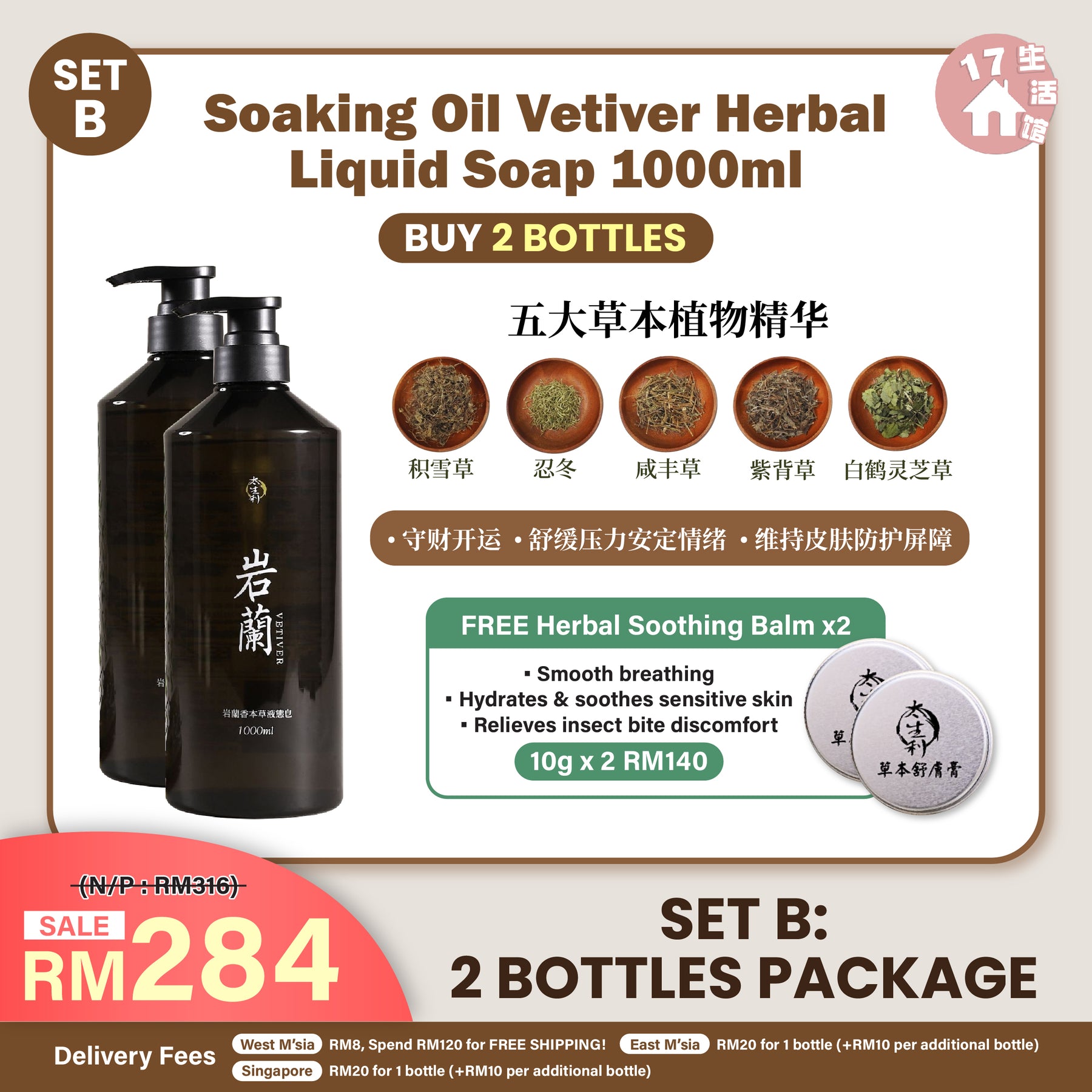 - 岩兰香草本𝟐瓶 RM284 (原价:RM316)🎁草本舒肤膏 x2 (价值RM140)