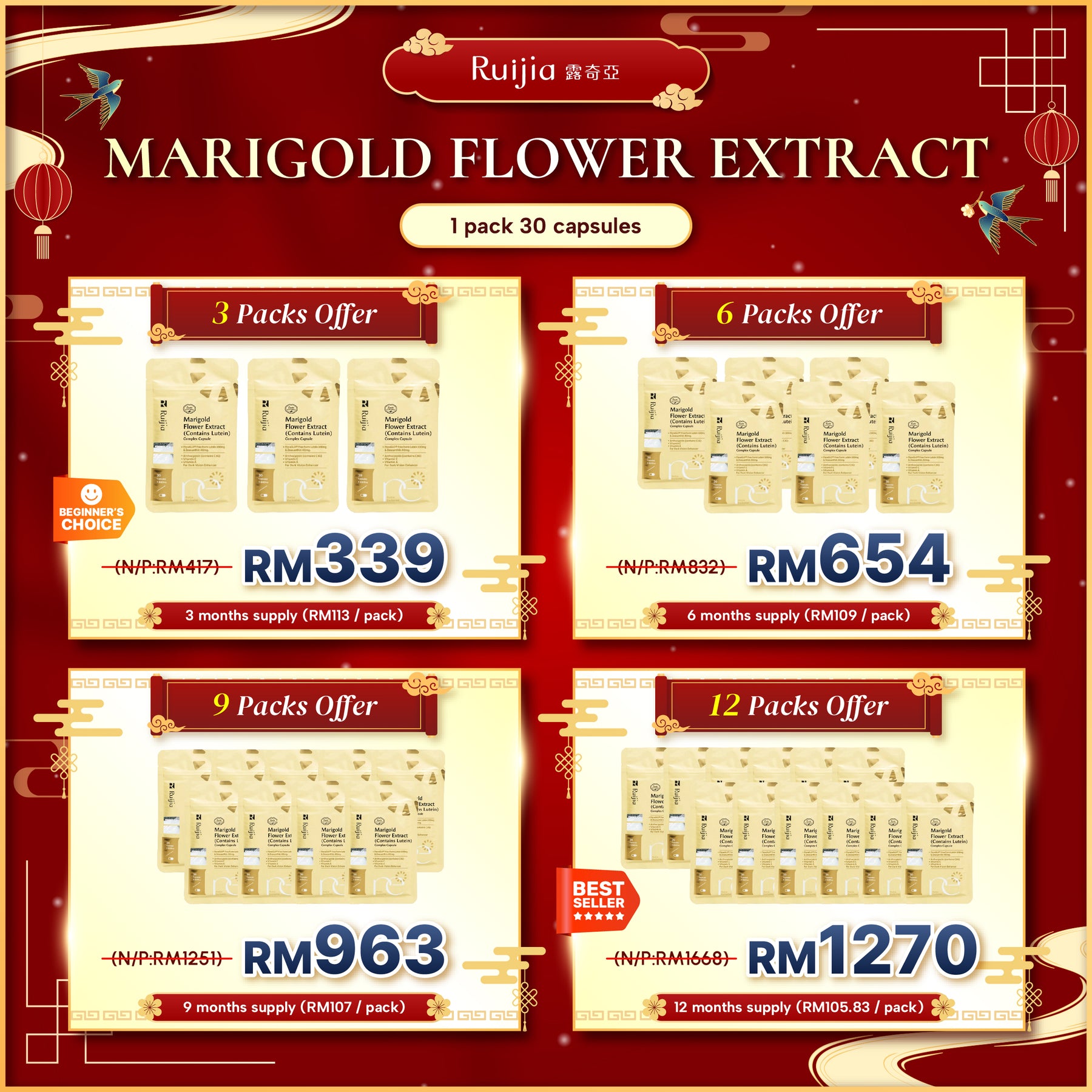 【PROMO】RUIJIA Marigold Flower Extract (Contains Lutein) 9合1游离型叶黄素(30日份